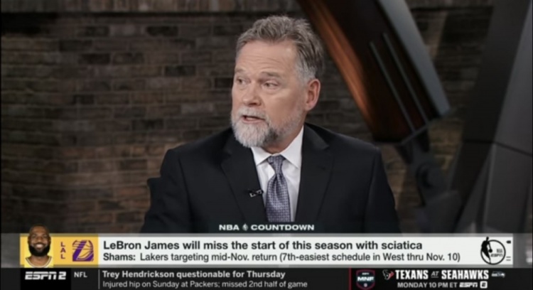 10月16日讯 今日,前掘金主帅马龙在ESPN赛前节目中谈到了湖人前锋詹姆斯的复出时间表。
