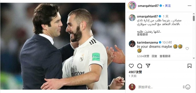 10月4日讯 记者Omar Qahtan报道,本泽马要求吉达联合引进索拉里作为主帅,但遭到拒绝,本泽马随后在评论区辟谣。