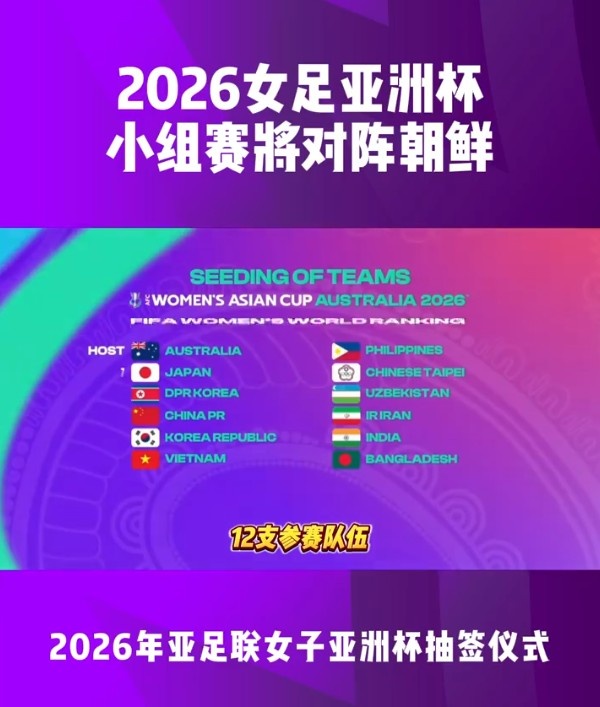 北京时间7月29日下午,2026年亚足联女子亚洲杯抽签结果揭晓。卫冕冠军中国女足与朝鲜、乌兹别克斯坦、孟加拉国同分在B组。