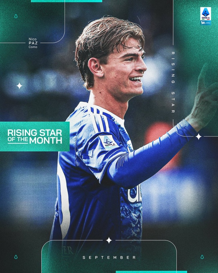 10月8日讯 意甲联盟官方宣布,科莫中场帕斯当选9月份最佳新星奖。