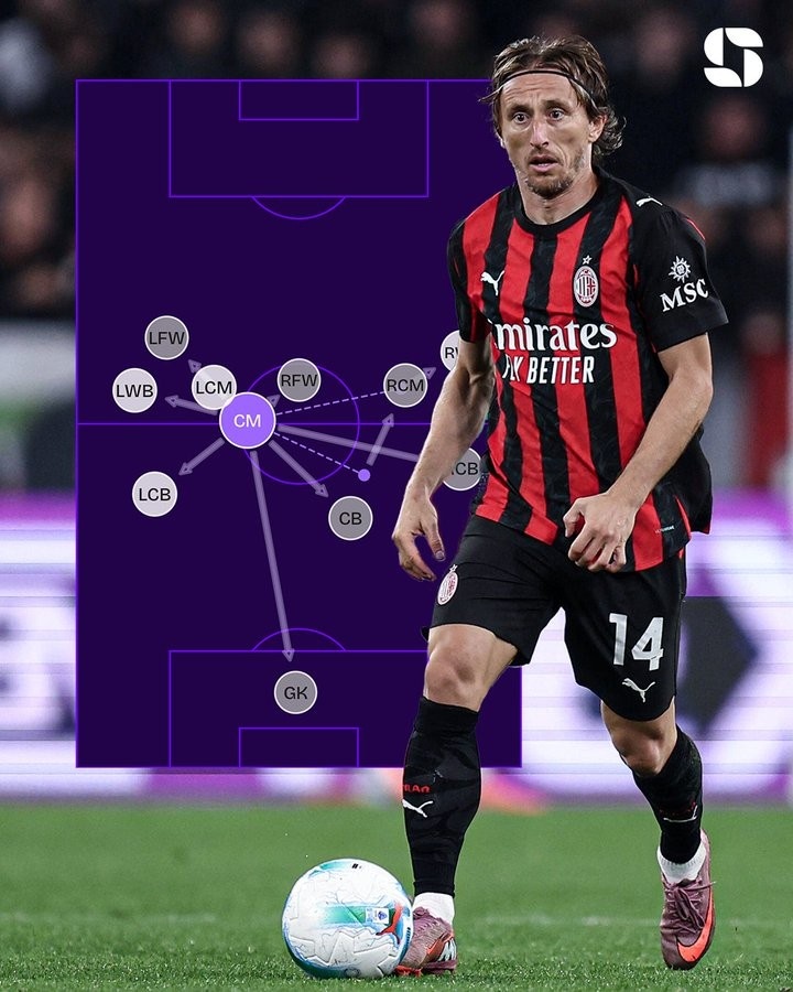 40岁意甲第一!莫德里奇赛季至今368次传球成功,排意甲球员榜首