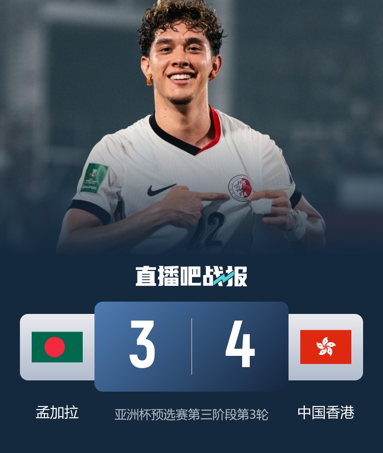 小组头名!中国香港4-3绝杀孟加拉国 李小恒替补戴帽艾华顿传射