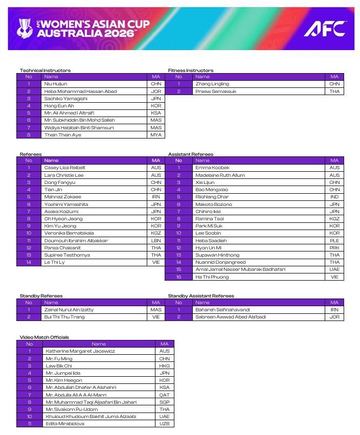 7名中国足协裁判人员入选2026年女子亚洲杯,创历史入选人数新高