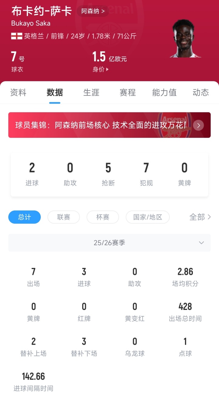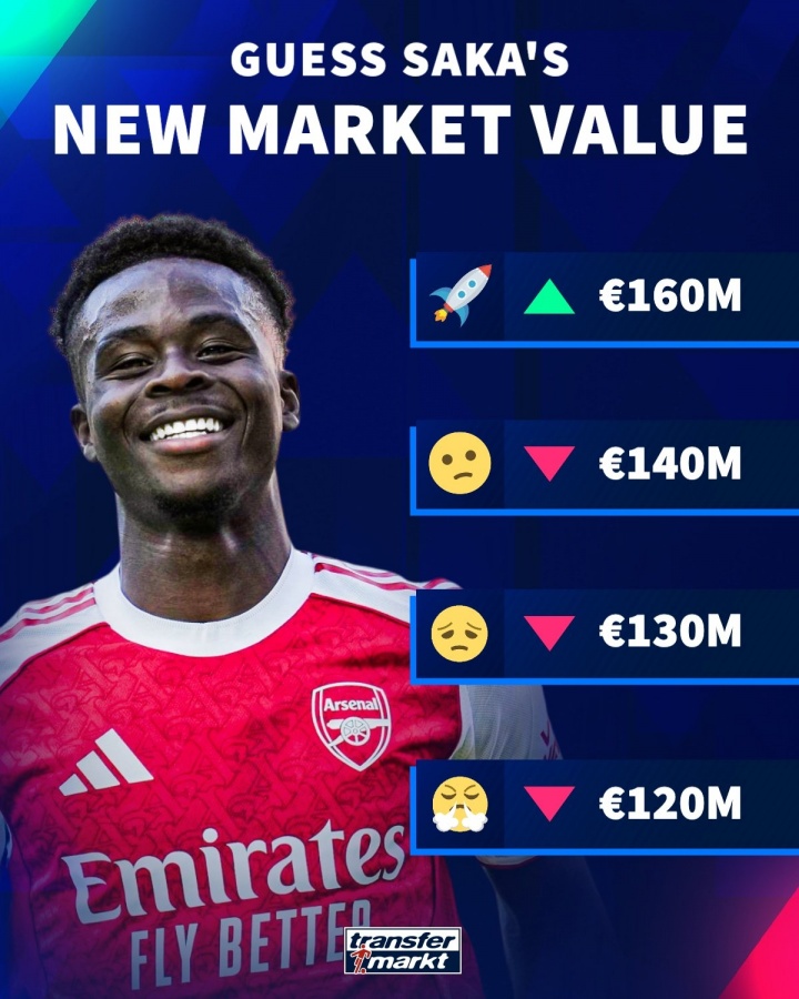 涨还是跌?德转预热萨卡身价变动:最低1.2亿欧🧊最高1.6亿🔥
